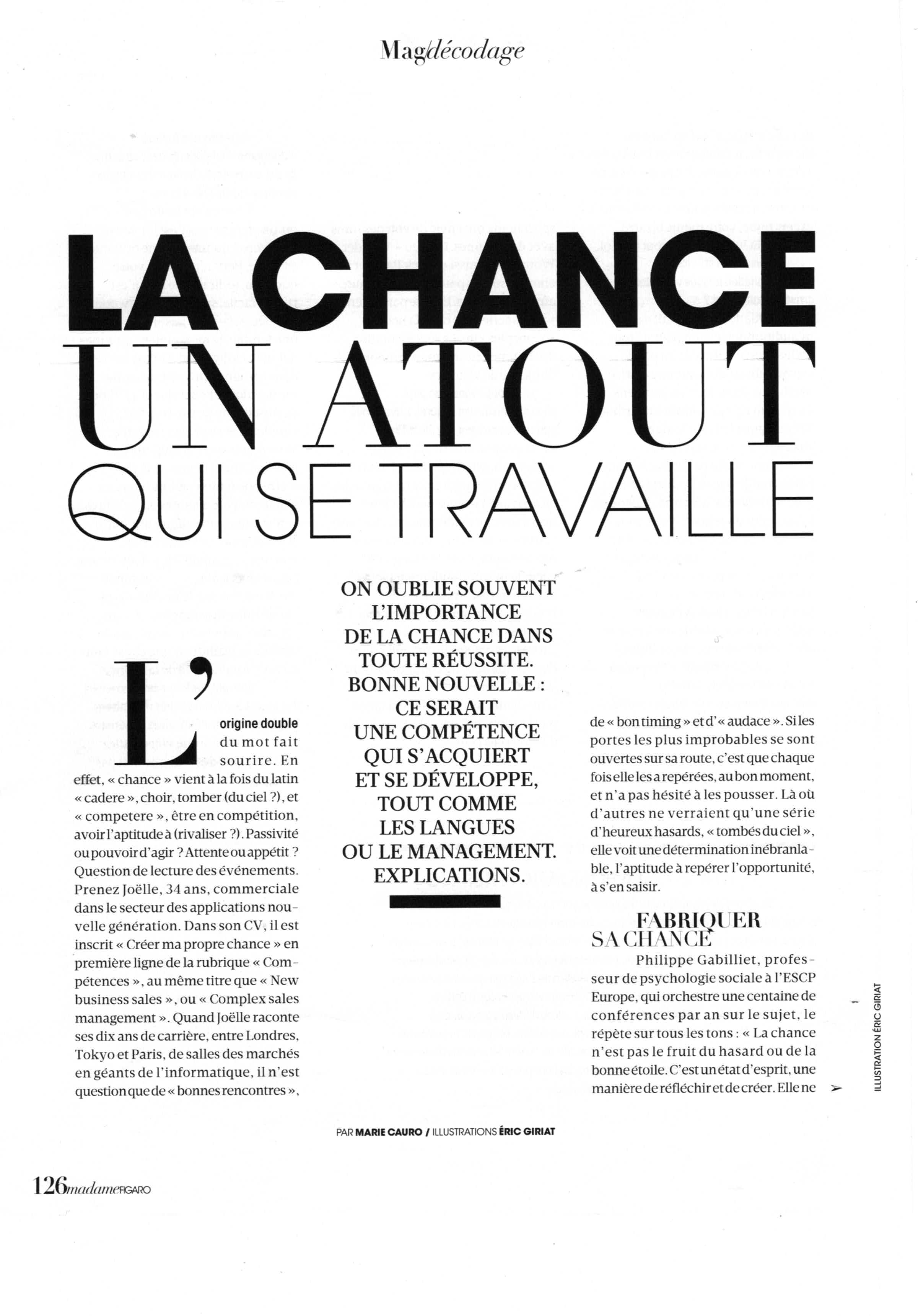 Retrouvez, dans le supplément « Madame Figaro » des 11 et 12 mai 2018, les conseils des experts au sujet de la CHANCE et la façon de la créer.
